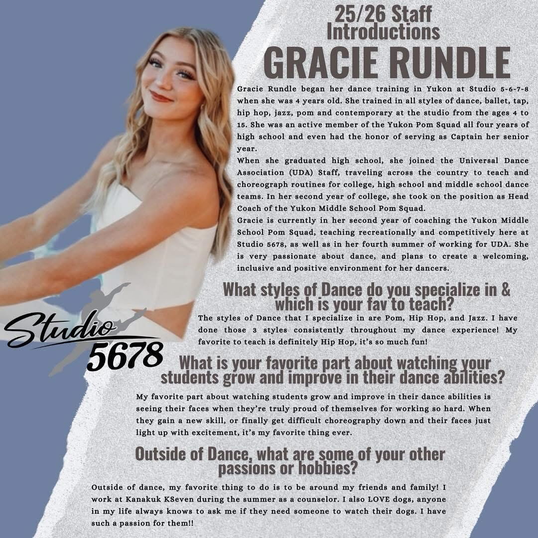 Tracie’s extensive competitive background includes performing on a nationally ranked Pom squad and serving as a UDA Allstar. These high-level experiences, combined with years of studio company competition, inspired her to dedicate her career to dance education. Today, she remains committed to her own growth, regularly training in diverse dance genres, acrobatics, injury prevention, and flexibility.