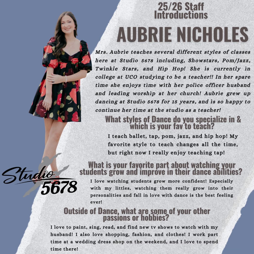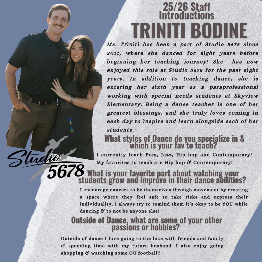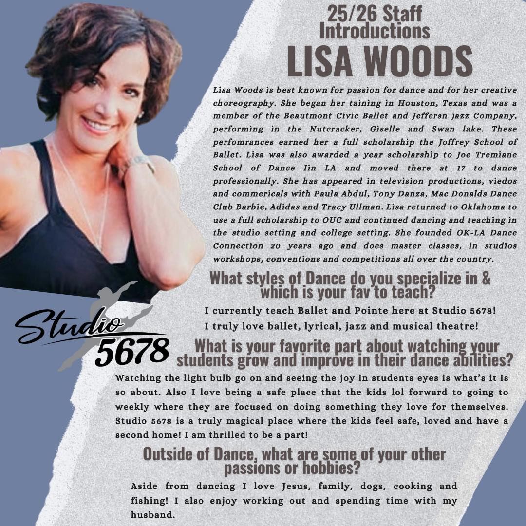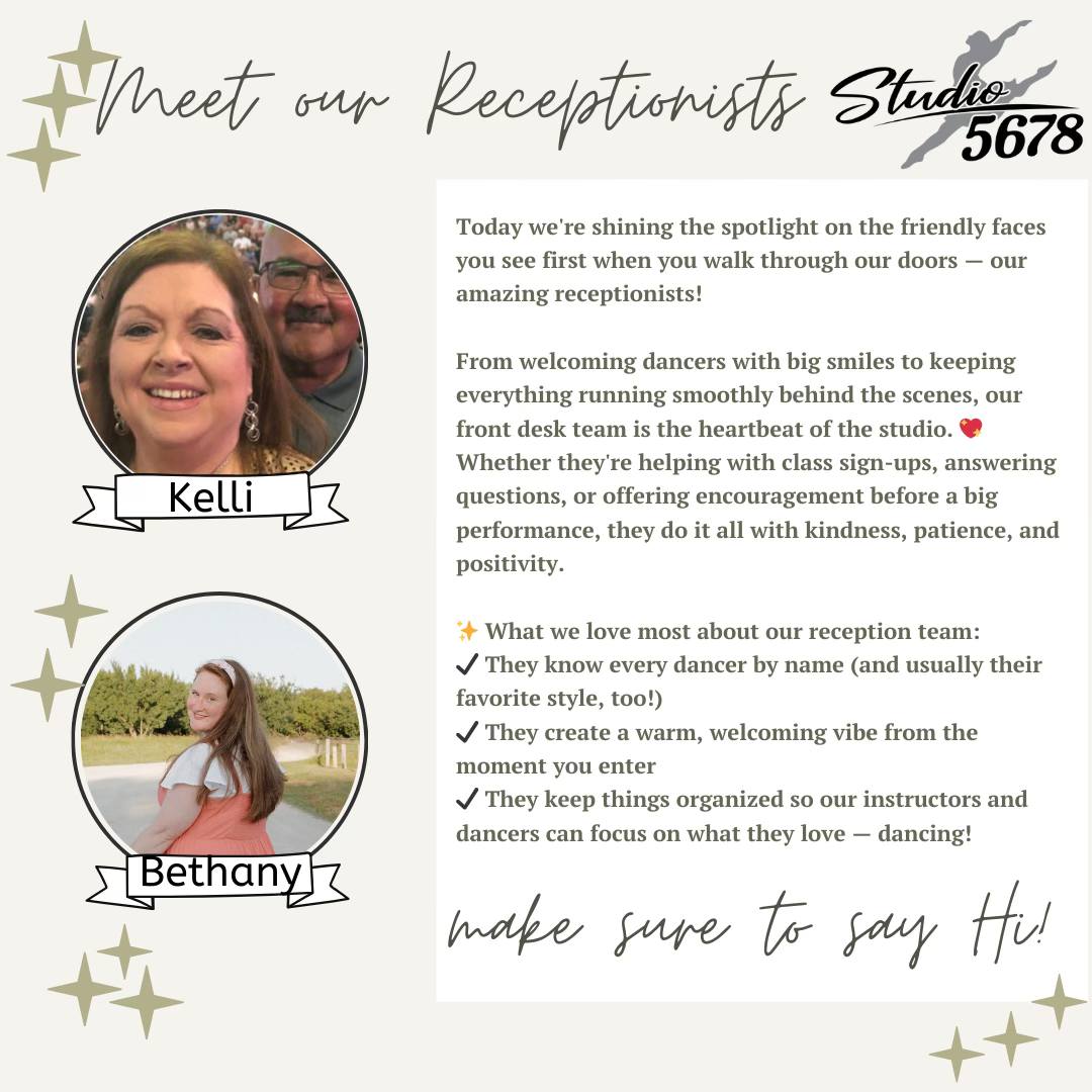 Under her leadership, Studio 5-6-7-8 and its talented team have guided numerous competitive groups to regional, state, and national titles. Now entering its 24th season, the studio has become a cornerstone of the community, serving over 300 students from Yukon, Mustang, El Reno, Piedmont, Bethany, and Edmond. For Tracie, Studio 5-6-7-8 is more than just a school; it is a vital space where children can move, express themselves, and build lifelong friendship.